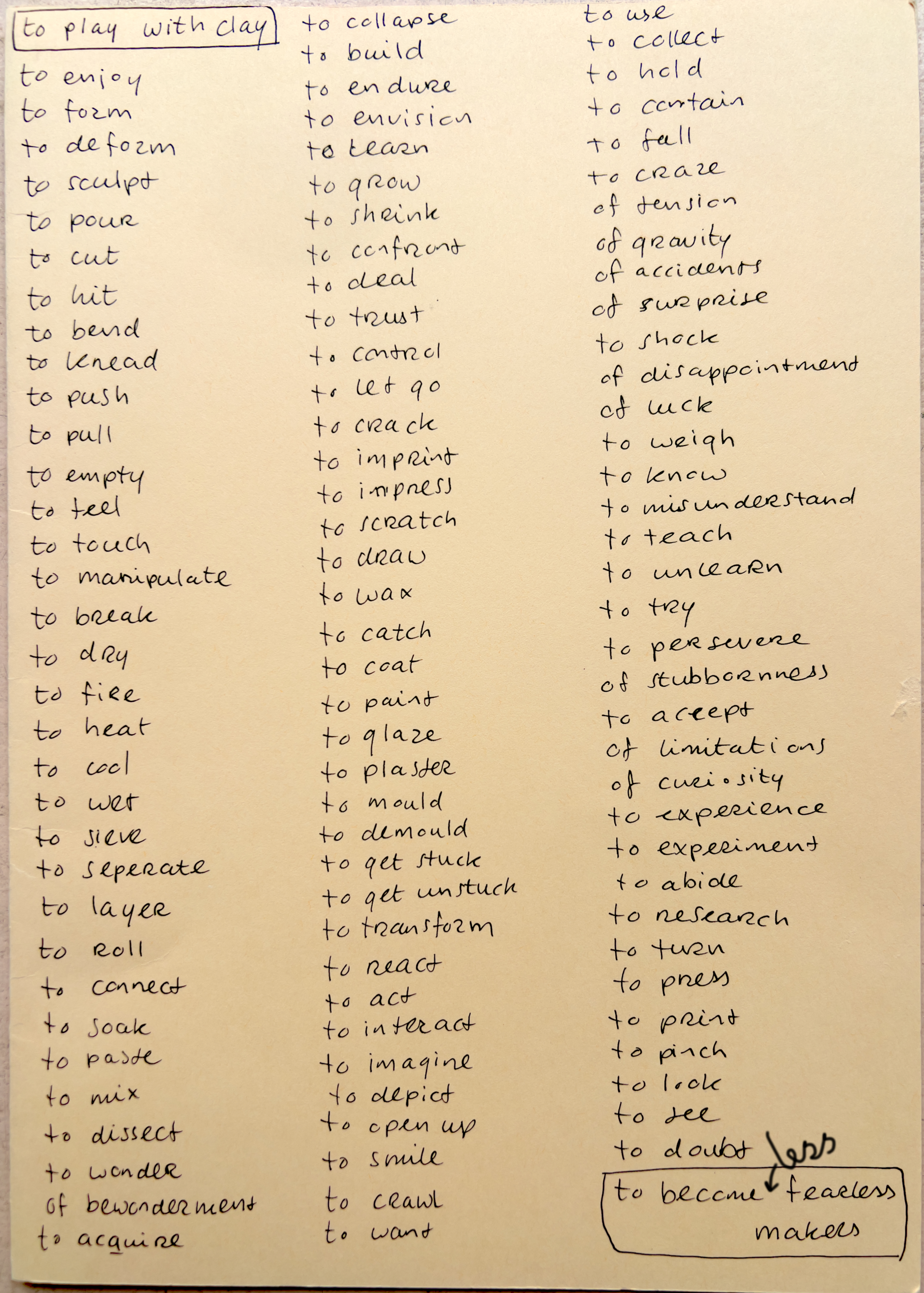 > Werken met je handen verbindt denken en voelen, maakt ideeën zichtbaar, moedigt experimenteren aan en verdiept je begrip van materialen en processen. Het geeft de wereld om ons heen meer samenhang.